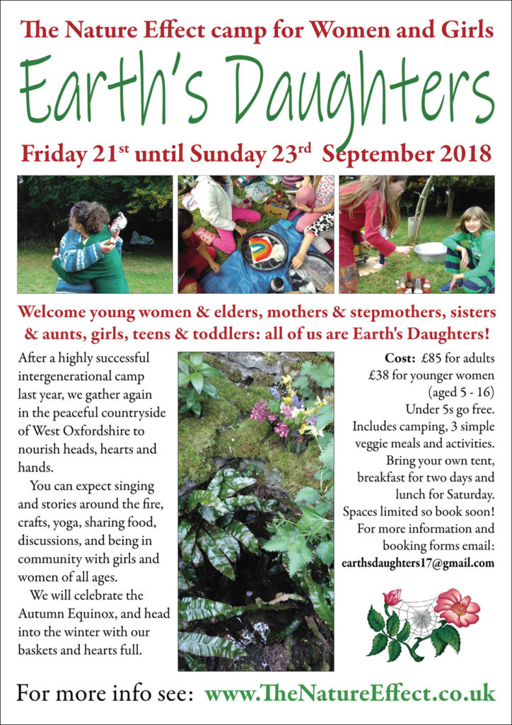 Join us in the gentle countryside of West Oxfordshire for the fourth Earth’s Daughters camp. We bring together the whole tribe of women and girls of all ages for a deep immersion into nature and community at the Autumn Equinox.